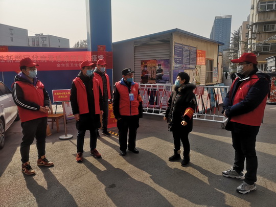 5日上午,黨員志愿者們首先來到東里路社區辦公室,慰問奮戰在抗疫一線的社區工作人員,并為社區送去了食品、防疫物資等慰問品。隨后,志愿者們統一著裝,"逆行"而上,來到東里路34號院,在接受社區負責人疫情防控的相關培訓后,服從社區統一安排和分配任務,迅速行動起來,開展志愿服務活動。大家堅守崗位,各司其職,協助社區工作人員認真做好居民進出掃碼登記、體溫檢測和消毒清潔等工作,在確保自我防控安全有保障的前提下,與社區形成工作合力,并肩作戰,共抗疫情,一起筑牢聯防聯控、群防群治的堅固防線。